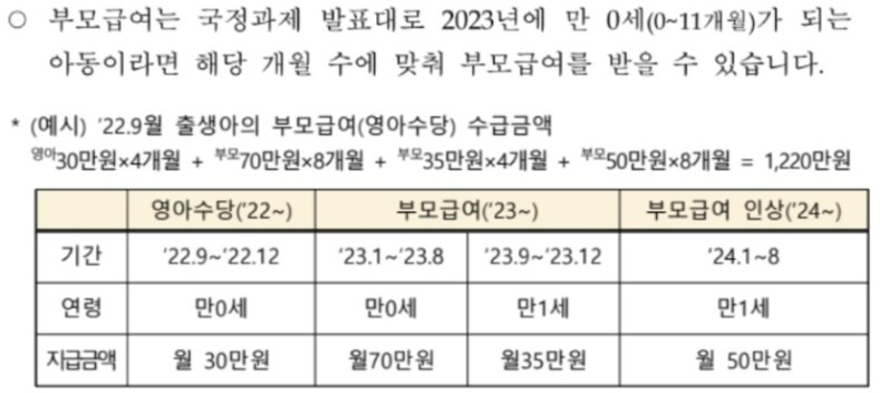 또한 부모급여는 23년 1/4일부터 신청을 받고 있으며, 매월 25일 지급됩니다.
